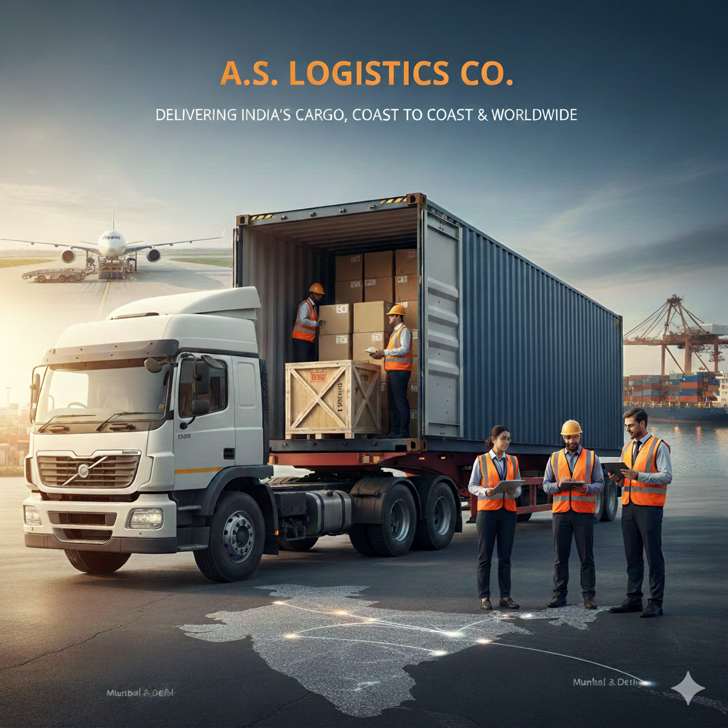A.S. LOGISTICS CO. handles all your transportation needs: cargo to Airports/Ports, 20'/40'FCL factory stuffing for sea/air, and all India domestic/ export transport from Mumbai /Delhi.